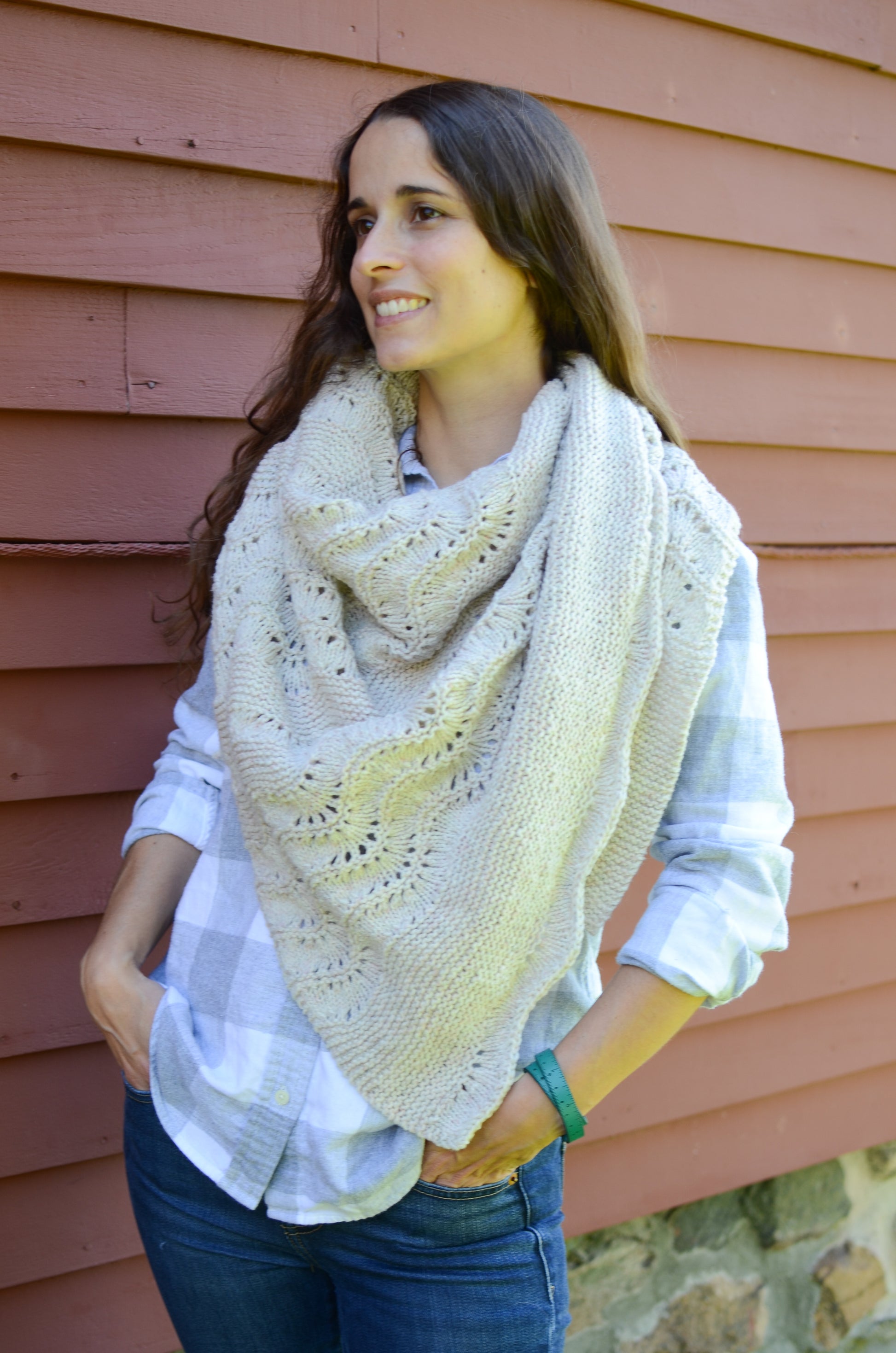 I designed this shawl in honor of my later father. ‘Nevasca’ means snowstorm in my native tongue, Portuguese. This shawl is inspired by sweet childhood memories with my father, learning to ski and watching the patterns of fluffy snow drifting over the hills.