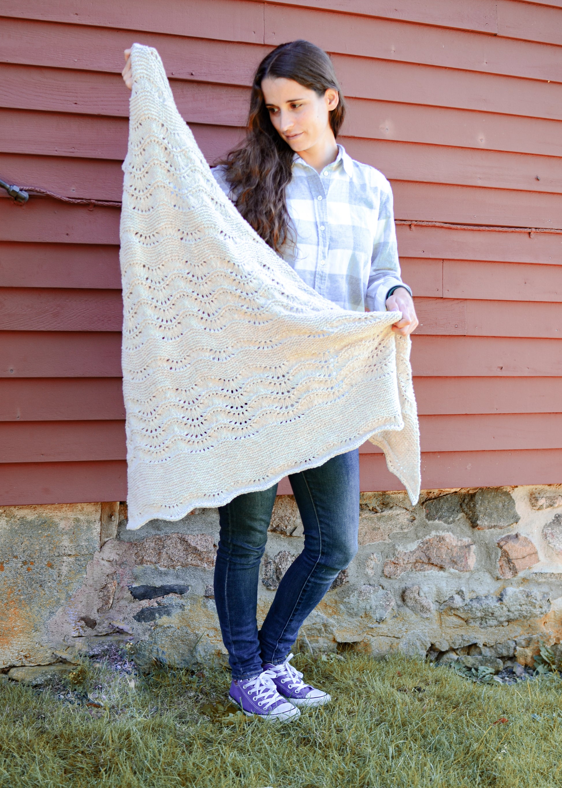 This pattern is a super fun knit, with just the right mix of soothing garter and engaging lace. Pick your color of Harrisville Daylights or Nightshades!