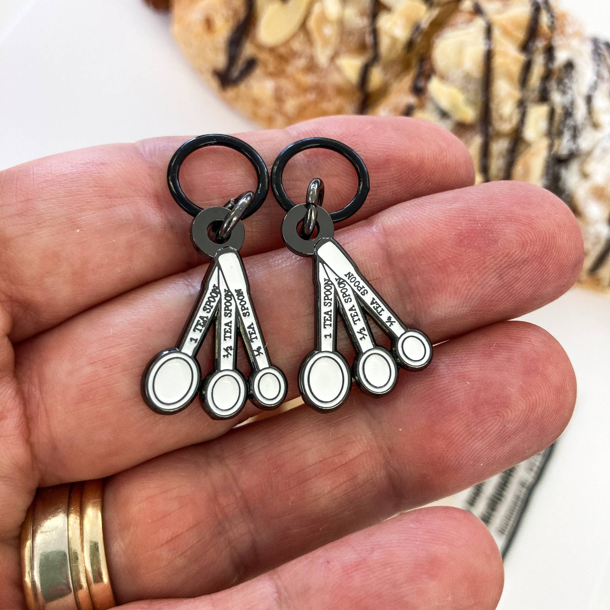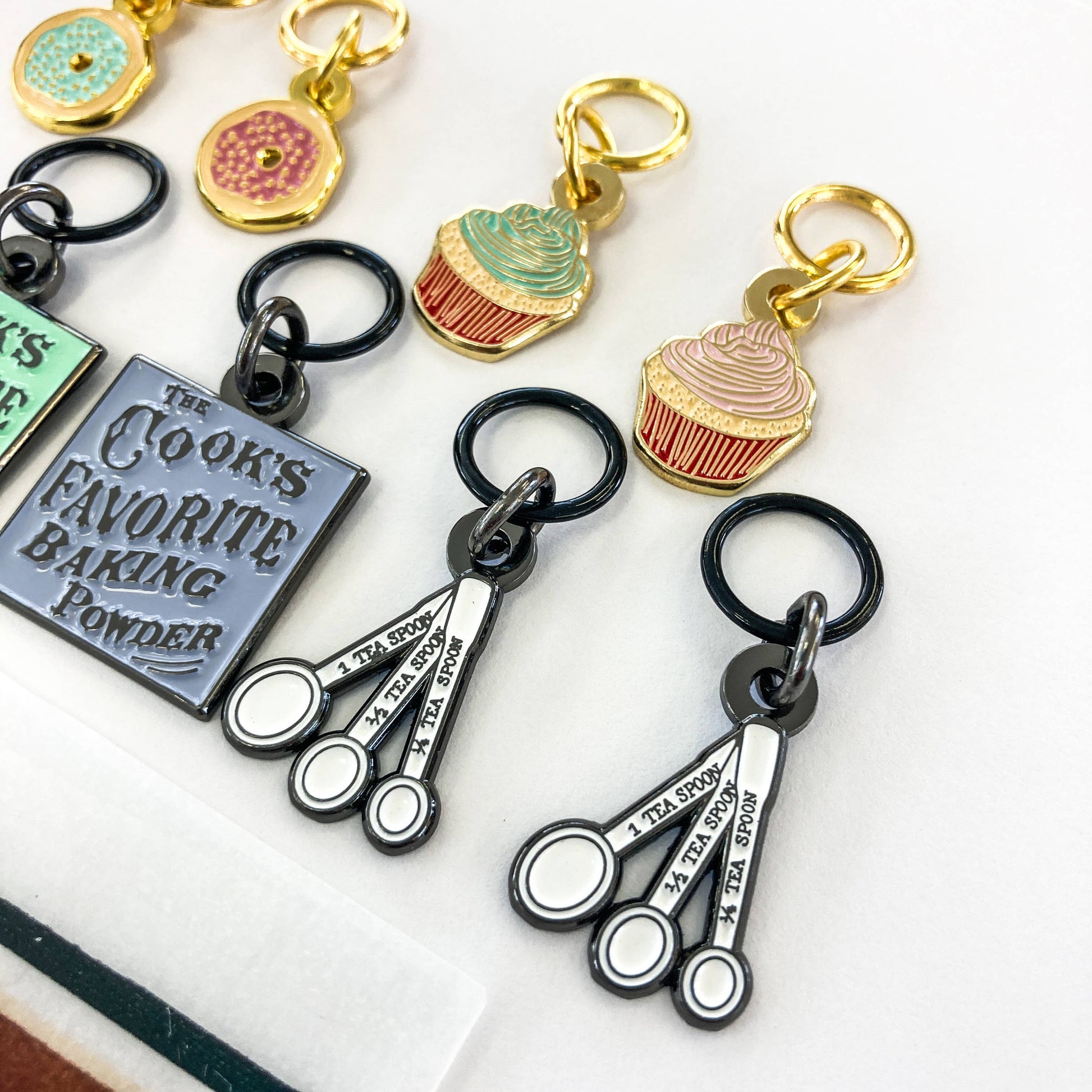 📦 Package Includes: Set of 8 Enamel Stitch Markers: 2 different coloured donuts, 2 different coloured cupcakes, 2 Teaspoons, and 2 different coloured baking powder.