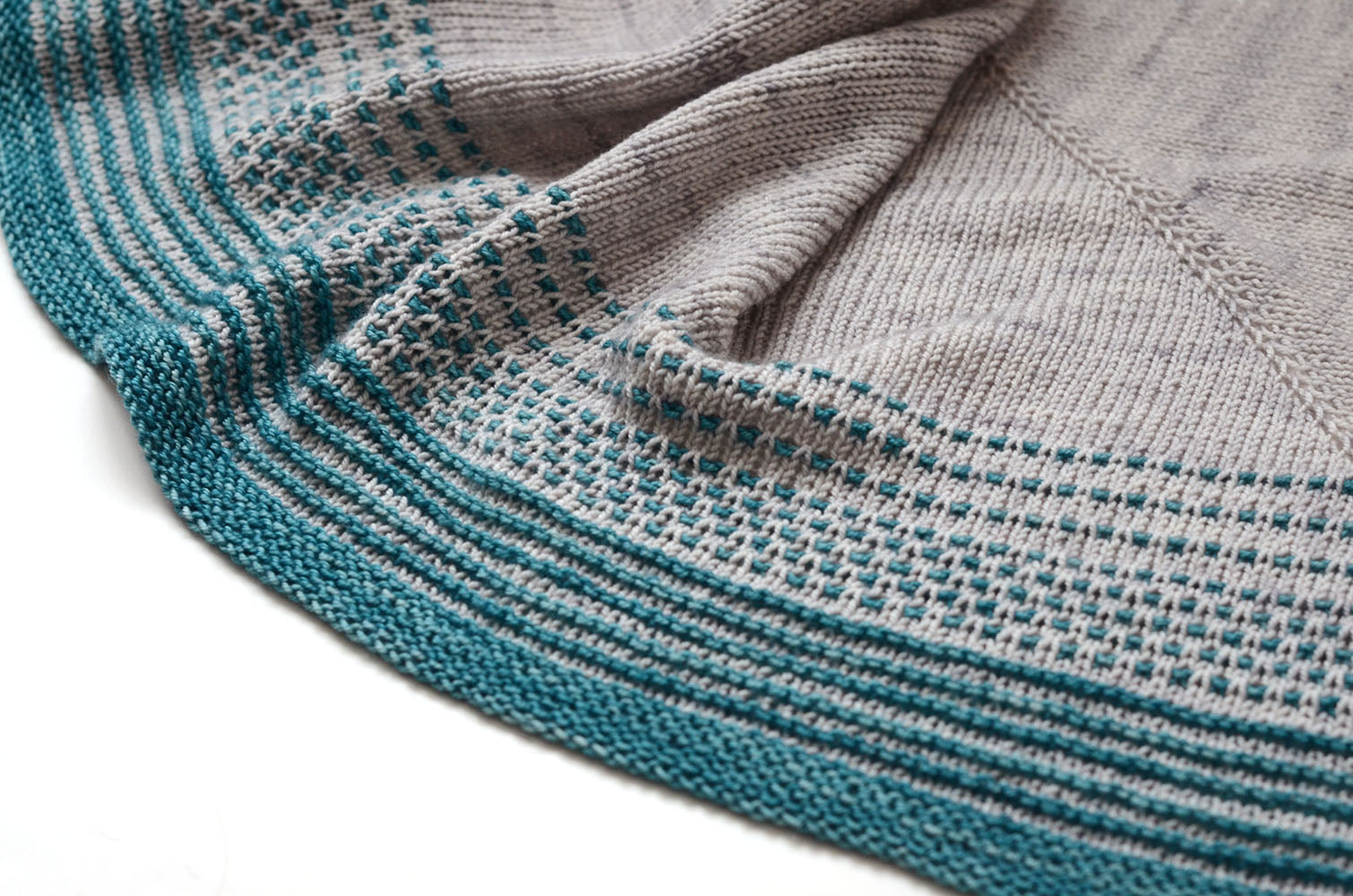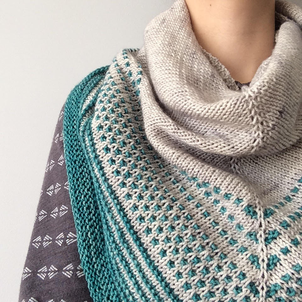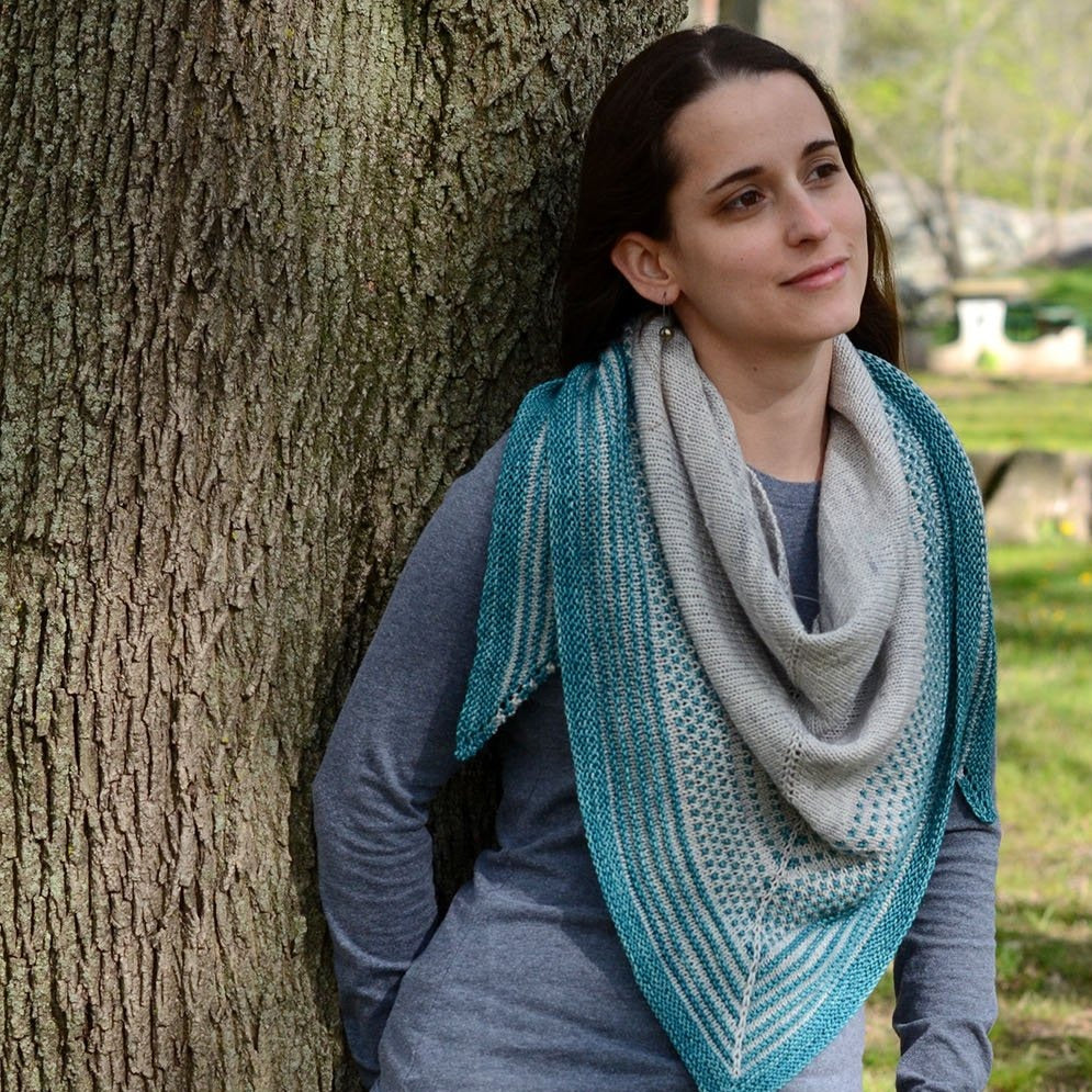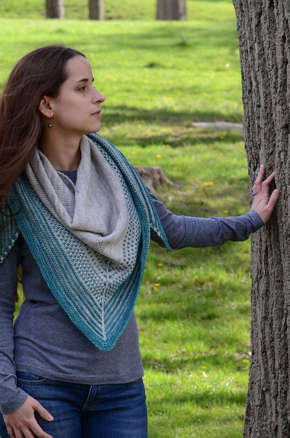 The design of this shawl was inspired by the concept of layering - of mountains fading into the background, of getting lost in the trees, and snow falling through the branches.