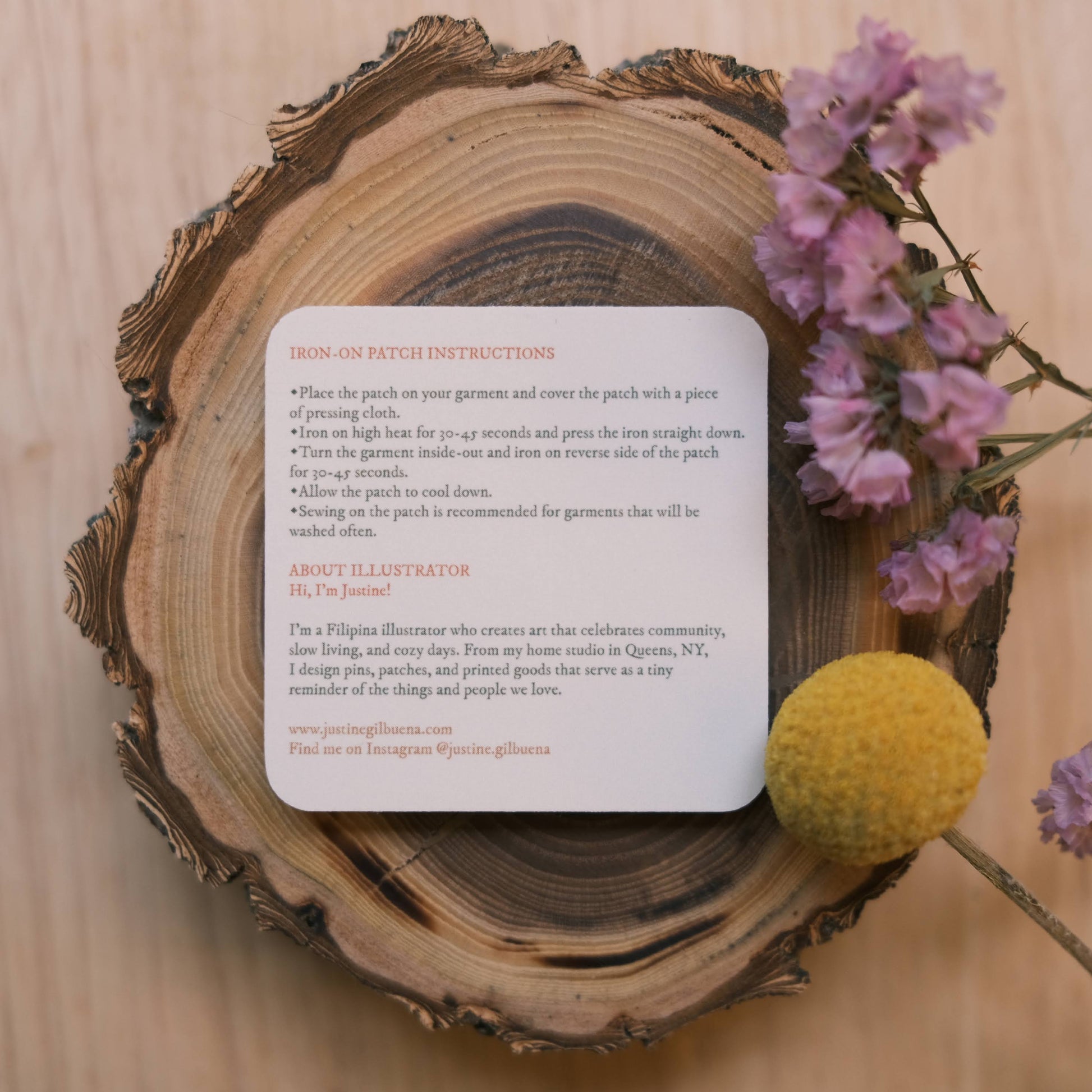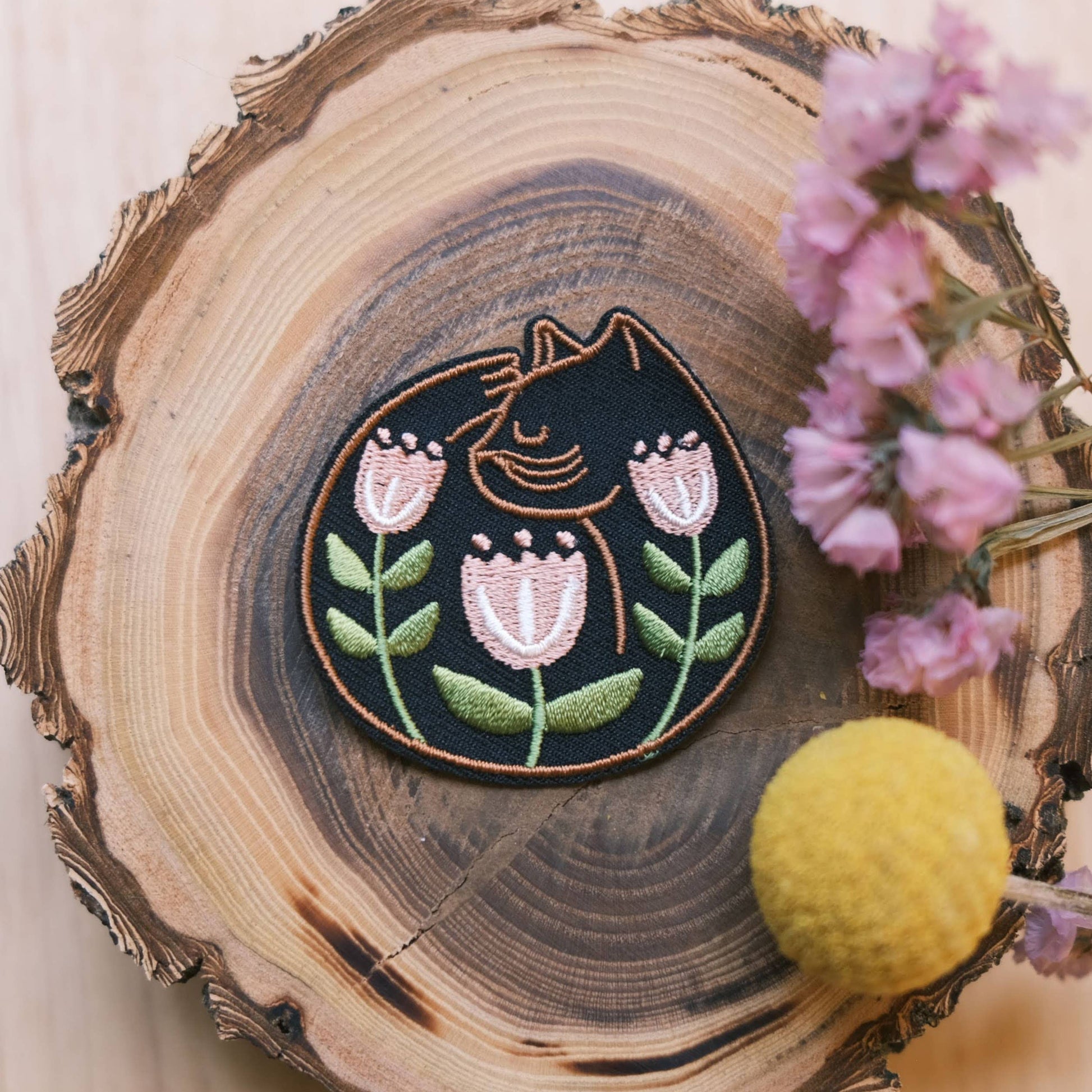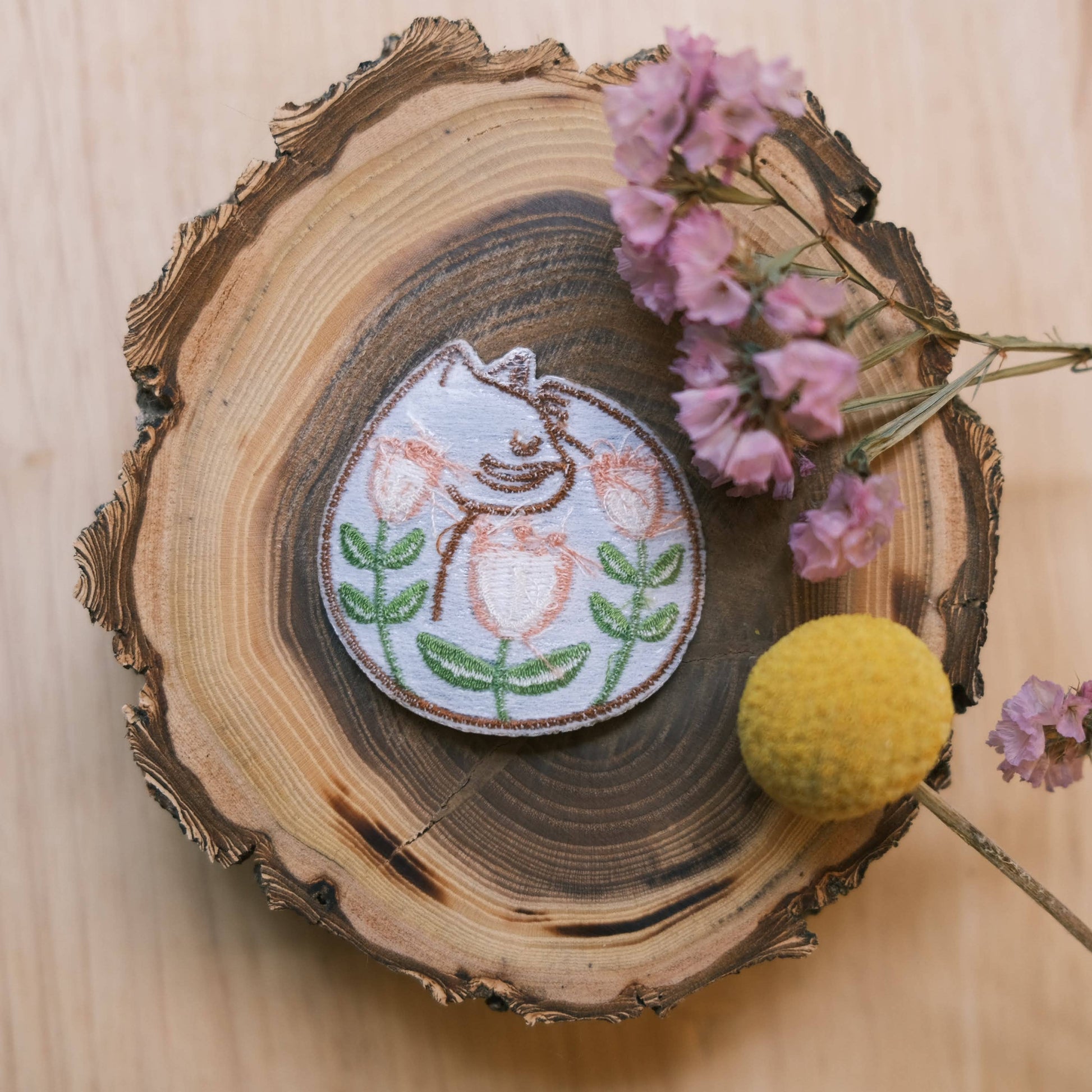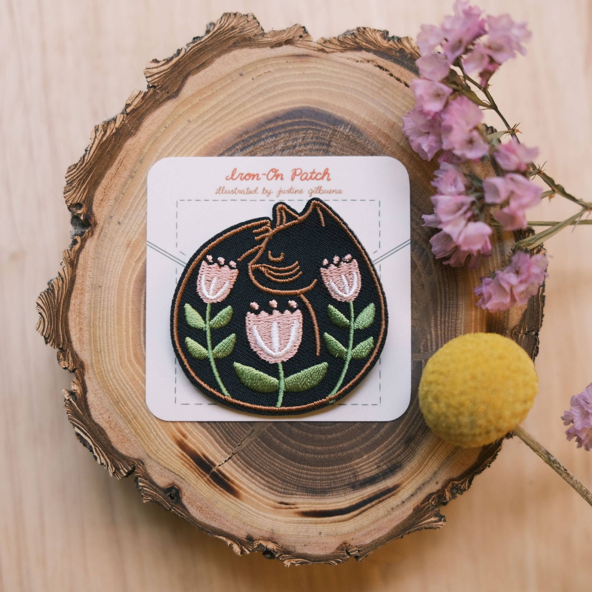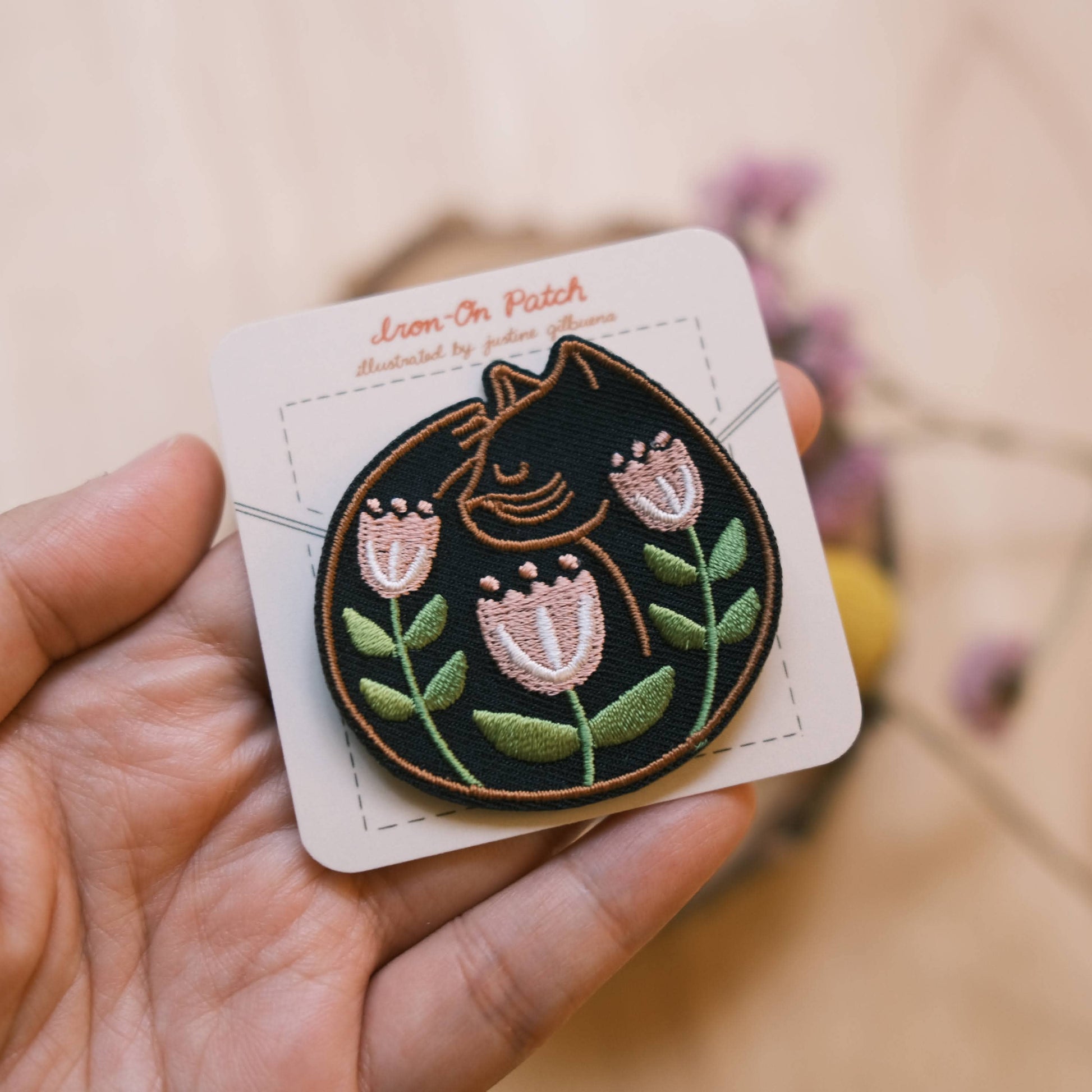 Original design by Justine Gilbuena! An adorable kitty patch to adorn your jacket or bag.