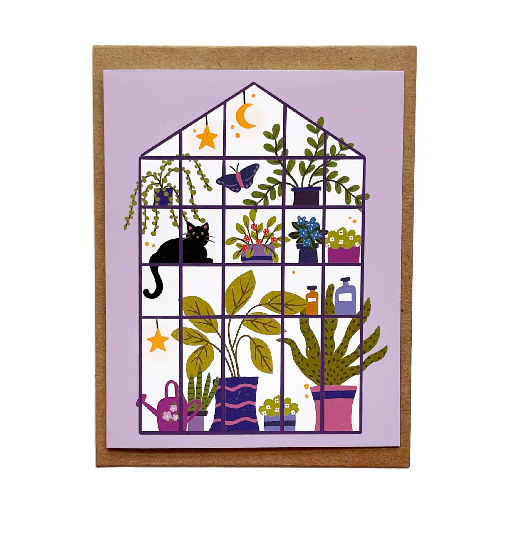 A cozy magical greenhouse, illustrated by local artist Keegsie.
