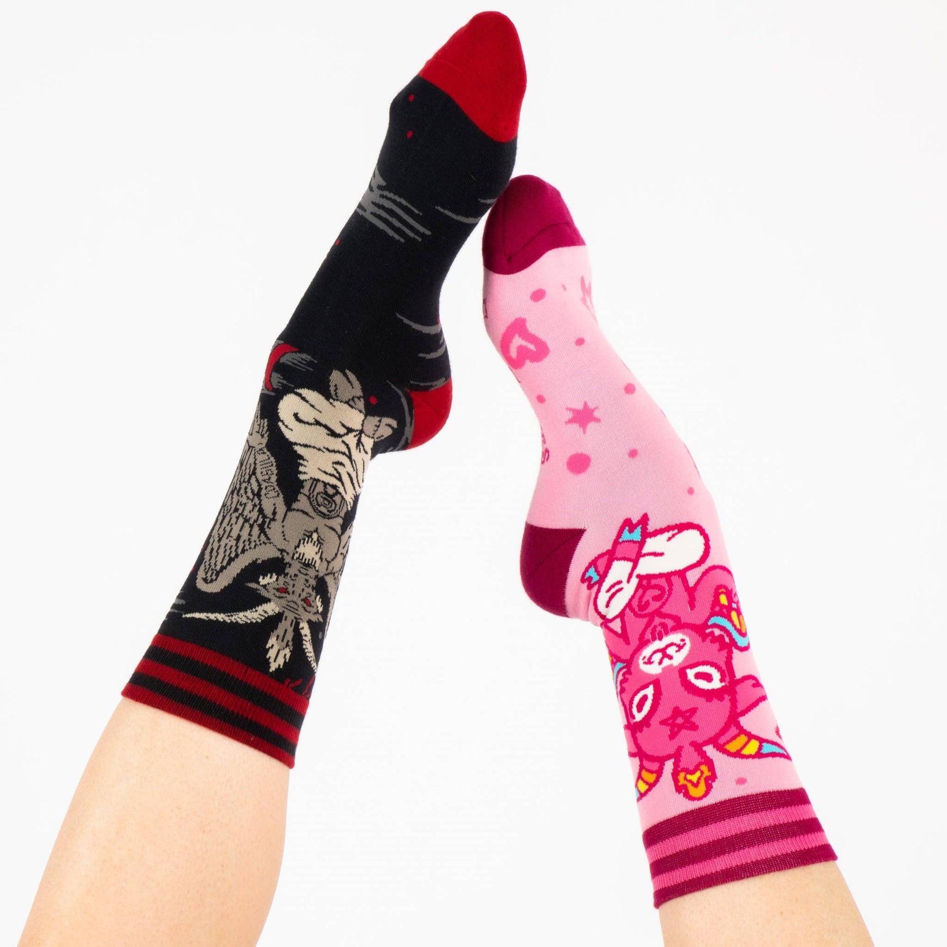 💛💗 Beweeve in yosewf 💗💛 The cutest most evilest socks in all the land featuring an adorable pink Baphomet. Pair with the Evil AF Baphomet so you can have an options for every mood.