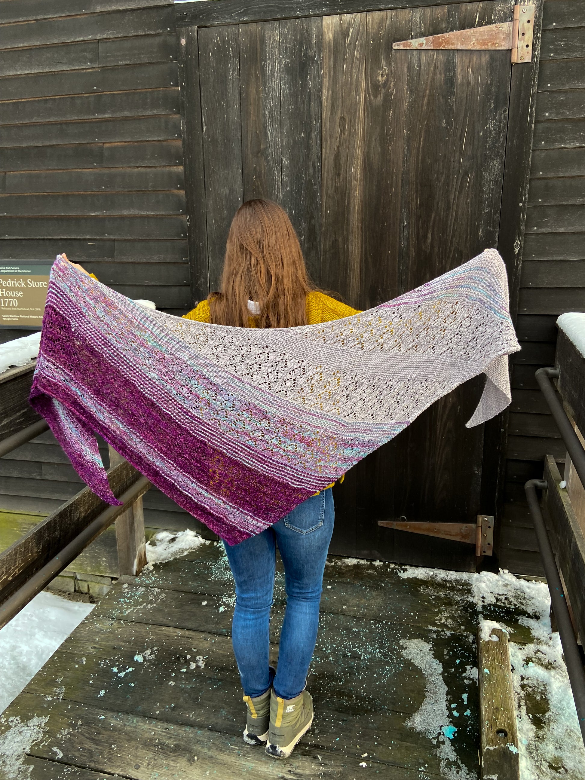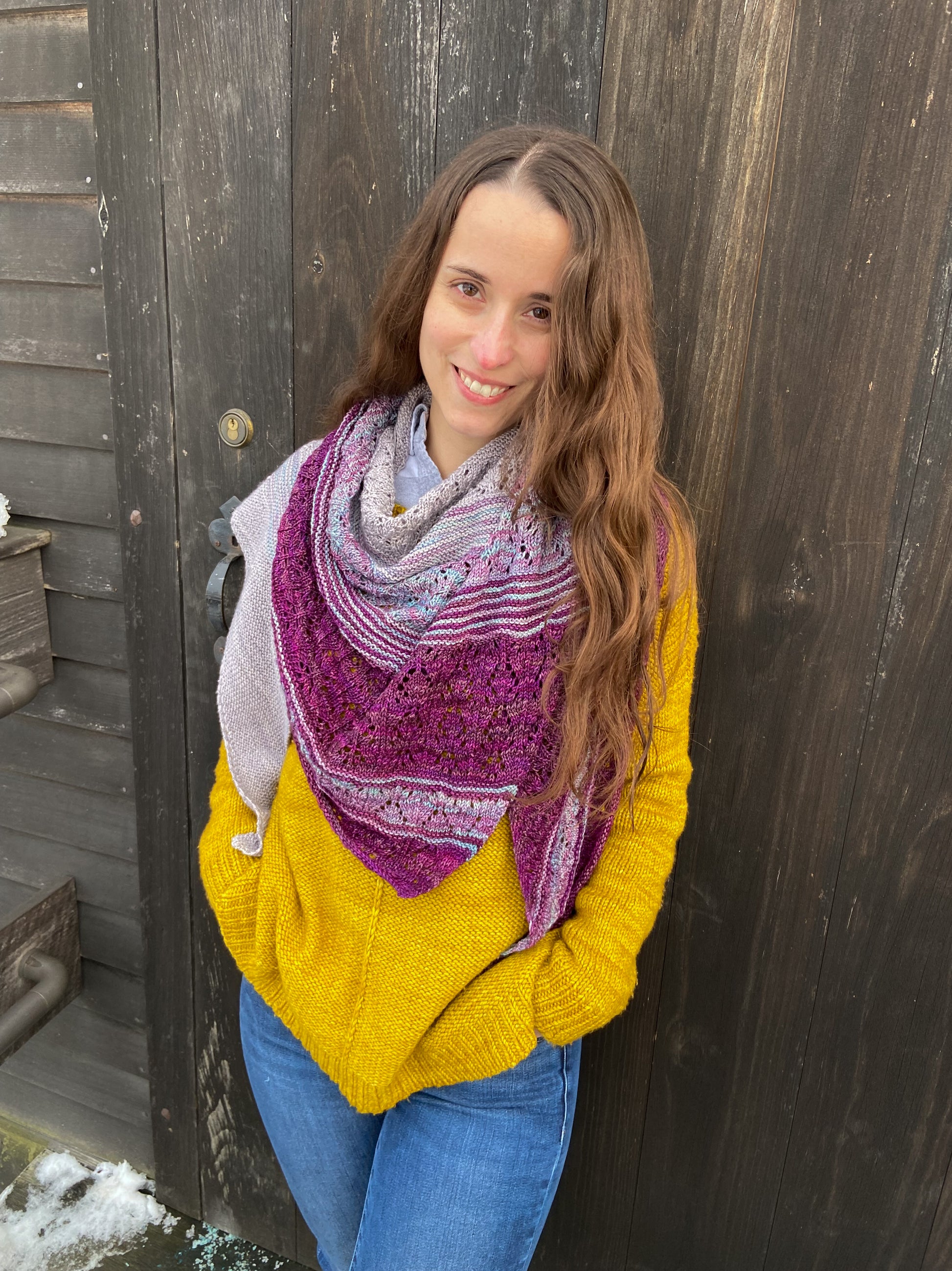 Diamond Dust is an asymmetrical triangular shawl knit on the bias with a soothing balance of meditative garter stitch and intuitive lace. Pattern is both charted and written.