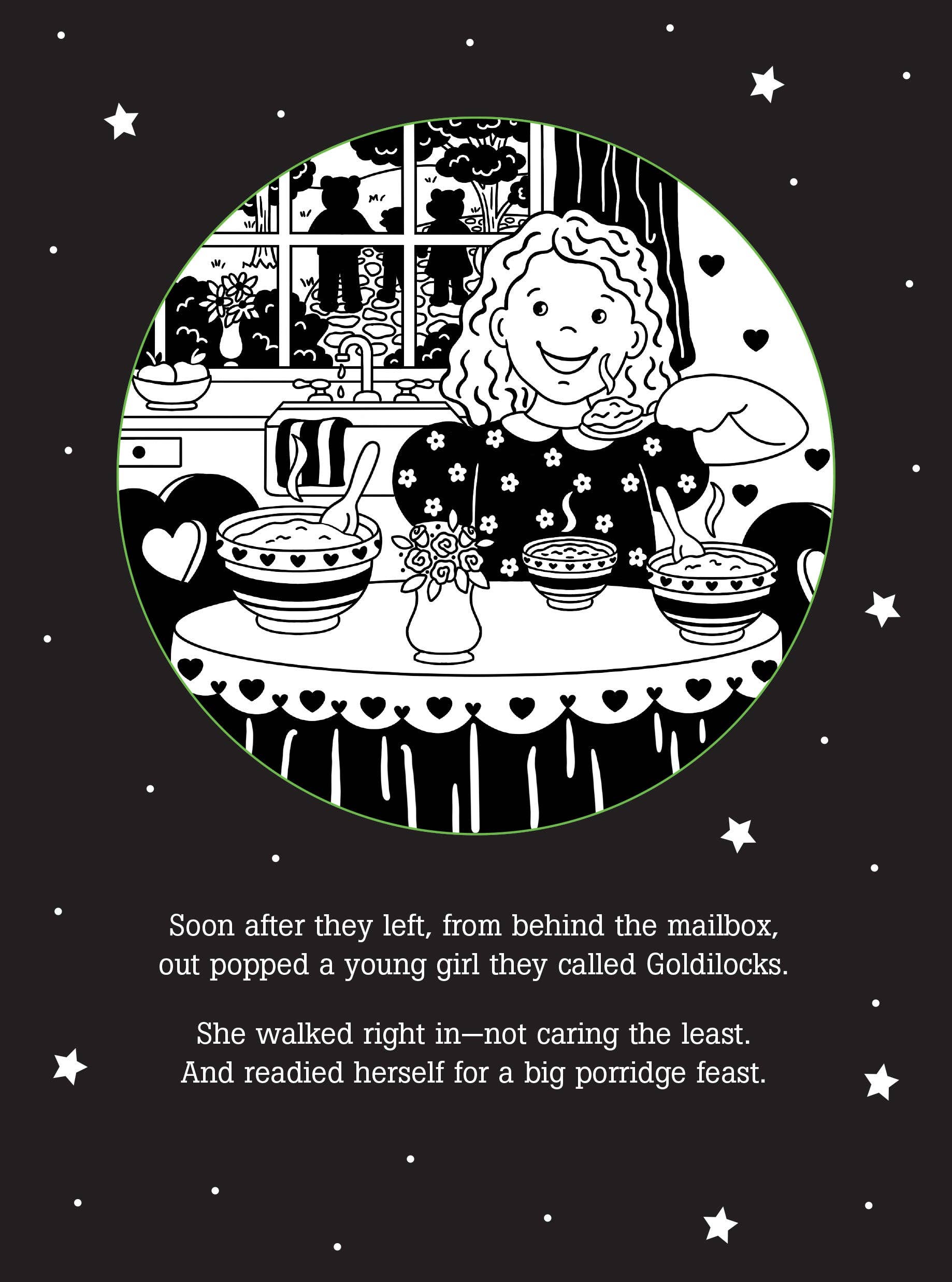 ''Deep in the woods, in a well-kept lair, lived Mama, and Papa, and sweet Baby Bear.'' ''Let's go!'' Mama said. ''It's seven o'clock. Our porridge will cool while we go for a walk.'' But The Three Bears are in for a BIG surprise when they return home! Share this favorite story with your child at bedtime! Simply shine the beam of a light (not included) through the ''windows'' on each page to cast the pictures on the wall as you read the story within. It's a comforting way to end the day and experience time together. Please note: For best results, use this shadow book with a small, single-bulb light source. A small pen light, other single-LED light, or the light on the back of a smartphone is recommended. Multi-LED flashlights are not recommended. If you have trouble getting a clear image, try moving your light closer to or farther away from the page. Ages 3 to 9. Sturdy covered wire-o hardcover binding.