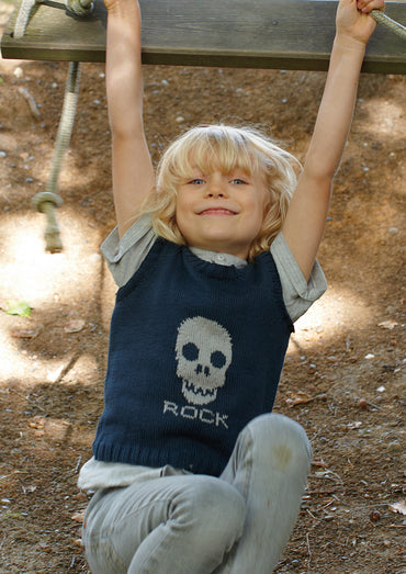 This fashionable collection of kidswear was designed by Martin Storey and is suitable for 3-8 year olds. It features simple knits alongside graphic colourwork, offering something for knitters of all skill levels.
