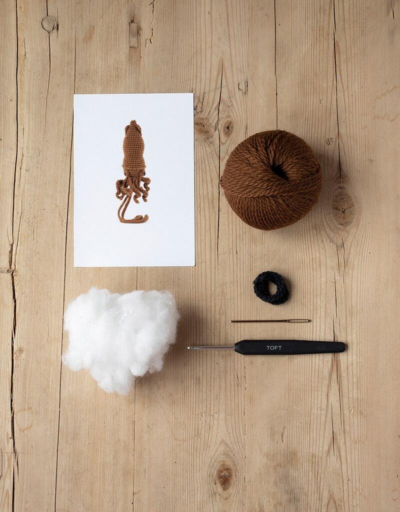 Darwin the Squid was originally designed by Kerry Lord for a crochet workshop at London's Natural History Museum, which is home to the giant squid (over 8 metres long!) that this kit is based on. Using an array of crochet techniques, this squid is quick and easy to make, perfect for any marine-themed display.