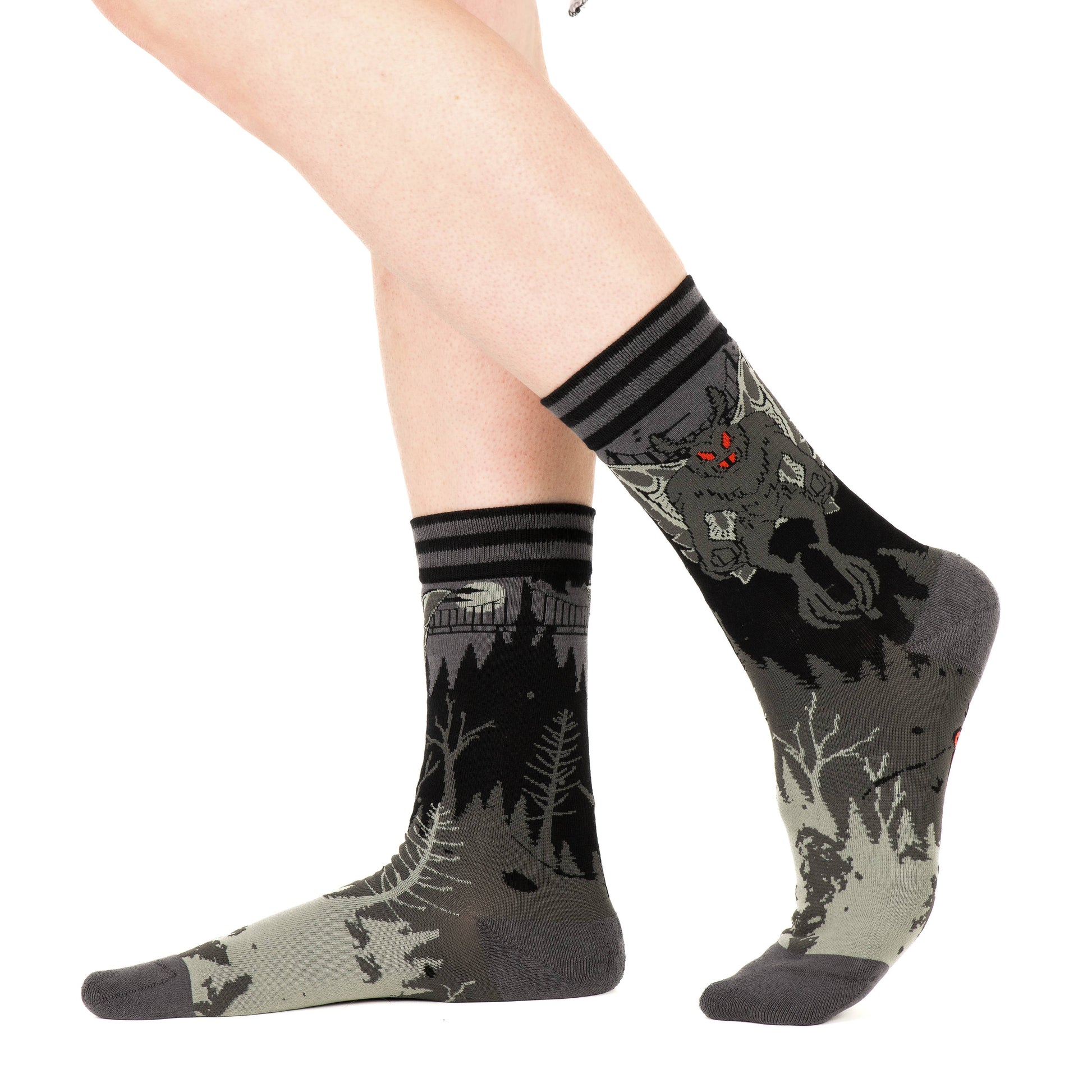 Sock Specs: * Combed Cotton/Nylon/Spandex for breathability, durability, and stretch * DOUBLE TERRY in the heel and toe area adds durability and comfort where most novelty sock brands fail. * 200N Thread Count for highest level of detail * 40 Gram Socks with smooth seams * No uncomfortable bumps in the toe area * One Size Fits Most Humans Size 6-13, may be snug on wider calves