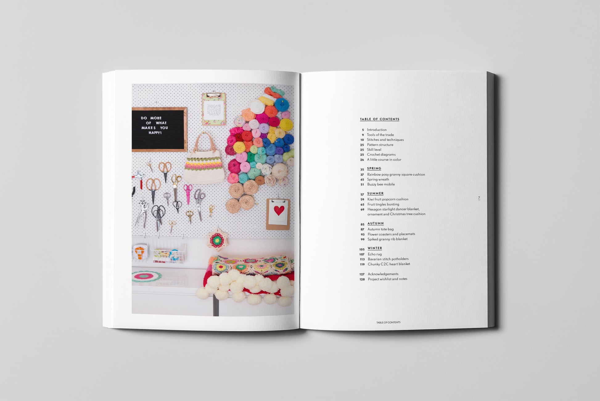 The book presents a kiwi cushion for summer, a leaf tote for fall, a heart blanket for winter, flower embellishments for spring, and much, much more! Each season has plenty to offer, to make the most of all the happy and cozy moments that make that time of the year unique.