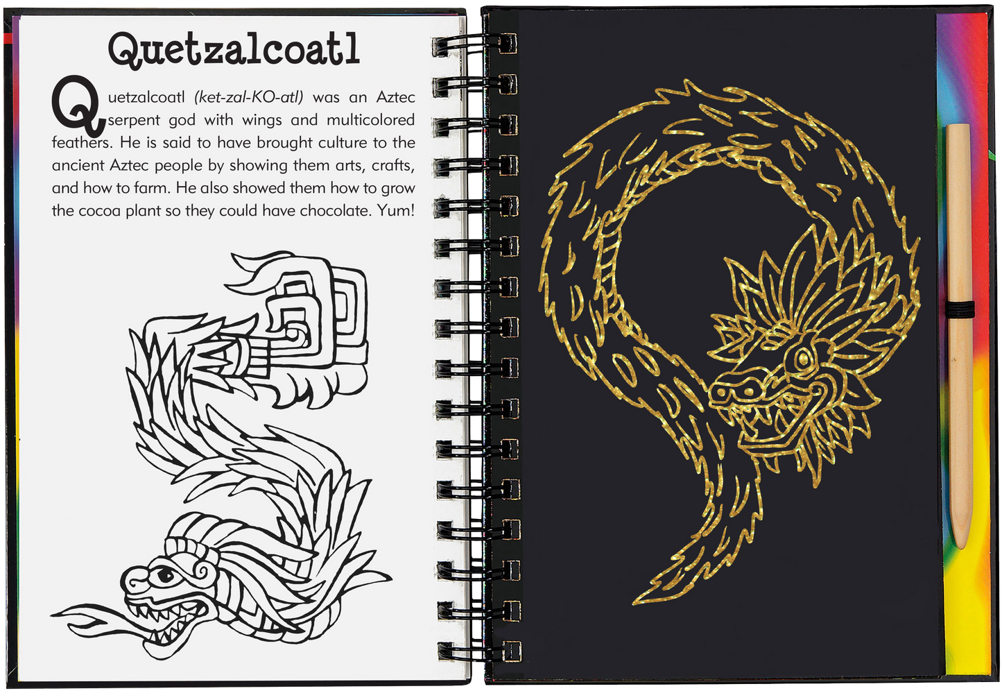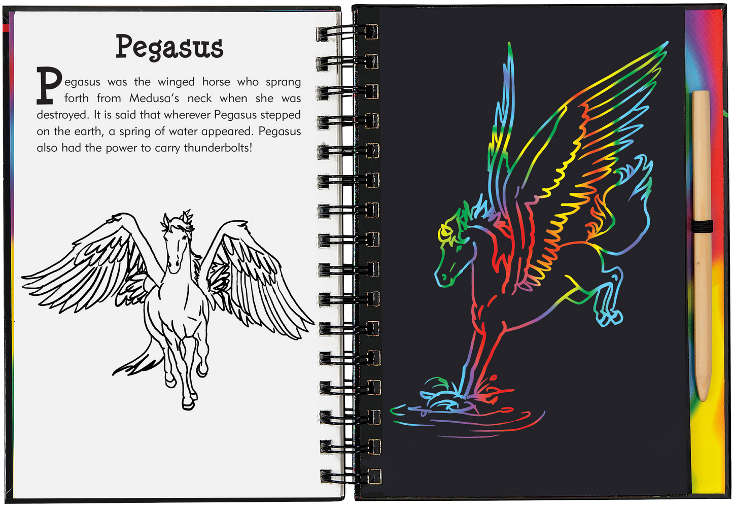 Jump into the realm of mythical creatures with the scratch of your stylus! Trace images of 20 fascinating mythical creatures and characters and learn their amazing stories! This is a Trace-Along Scratch and Sketch ! White outlines on black scratch-off pages create a fun way for younger children (5 and up) to trace the pictures, revealing patterns, swirls, and holographic colors. They can also use the sketch pages in the back to draw their own pictures. The wooden stylus for tracing is shrink-wrapped with the book. Includes 20 black-coated scratch-off pages, 20 illustrated pages with informative text, and 20 extra pages for independent drawing and sketching. Suggested ages: 5 and up. Sturdy wire-o hardcover binding. Art activity book measures 6-3/8'' wide x 8-1/2'' high. 64 pages. Non-toxic. Potential eye irritant. Avoid inhaling pa