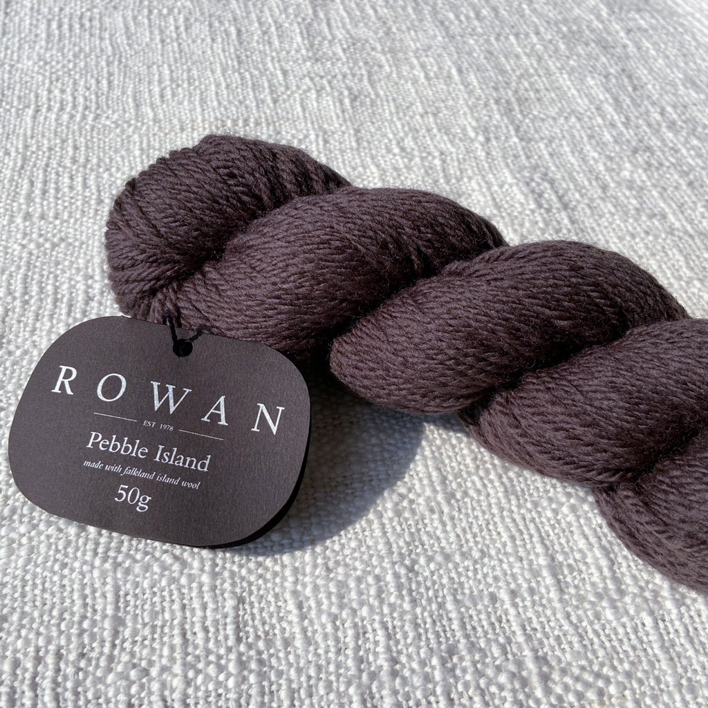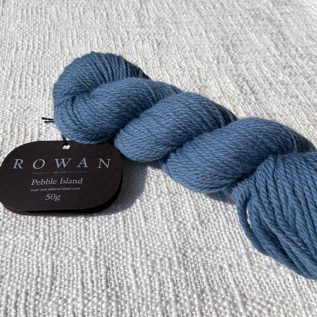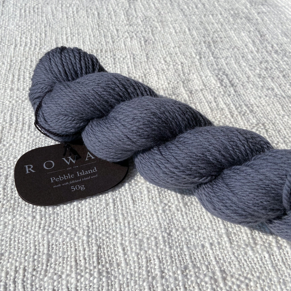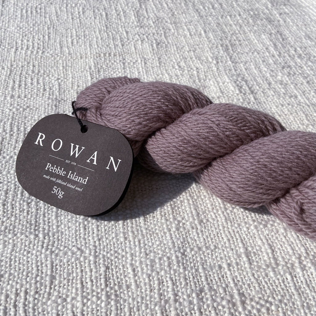 Pebble Island, in the Falkland Islands archipelago, is home to a farming family and several thousand unique Merino sheep who graze freely on the luscious natural vegetation and breathe in the rich sea air. This special location is where some of the world’s finest pure merino wool is grown, and then carefully shorn by hand before shipping to the UK where it is spun and dyed in a family-owned Yorkshire mill. This is a yarn that has taken time and careful planning—Rowan has been able to procure the entire clip from several shearings to launch a very special limited-quantity yarn, and is committed to continuing to purchase from the island each year. This yarn is fully traceable, responsibly farmed, and 100% pure. The beautiful palette was developed by Erika Knight and is inspired by the natural stones and the indigenous flora and fauna found on Pebble Island. This exceptional yarn is natural, renewable, biodegradable, breathable, hypoallergenic, resilient and elastic, making it comfortable both to knit with and to wear.