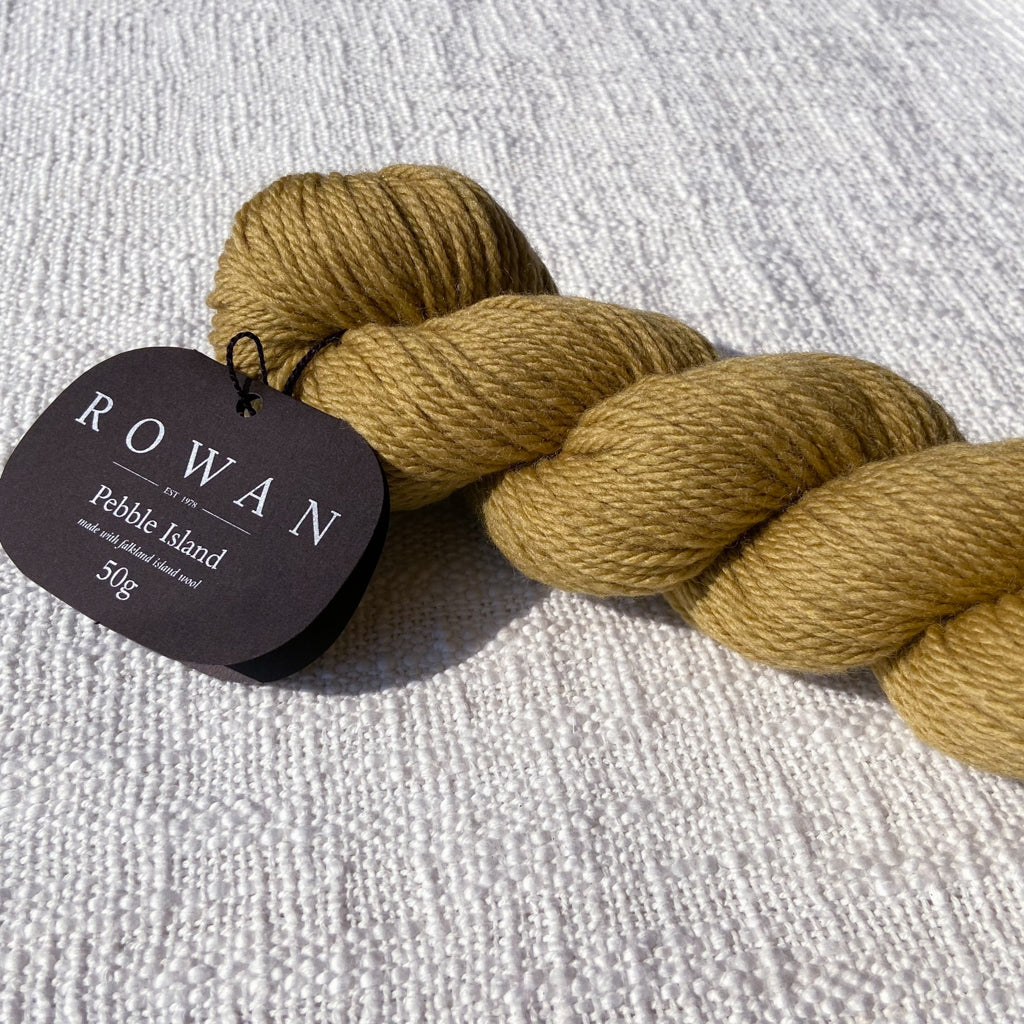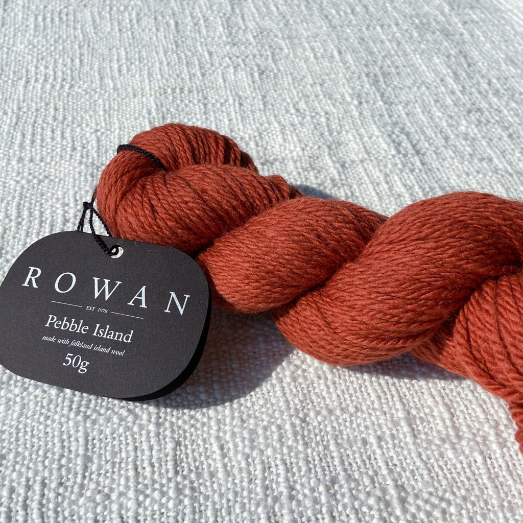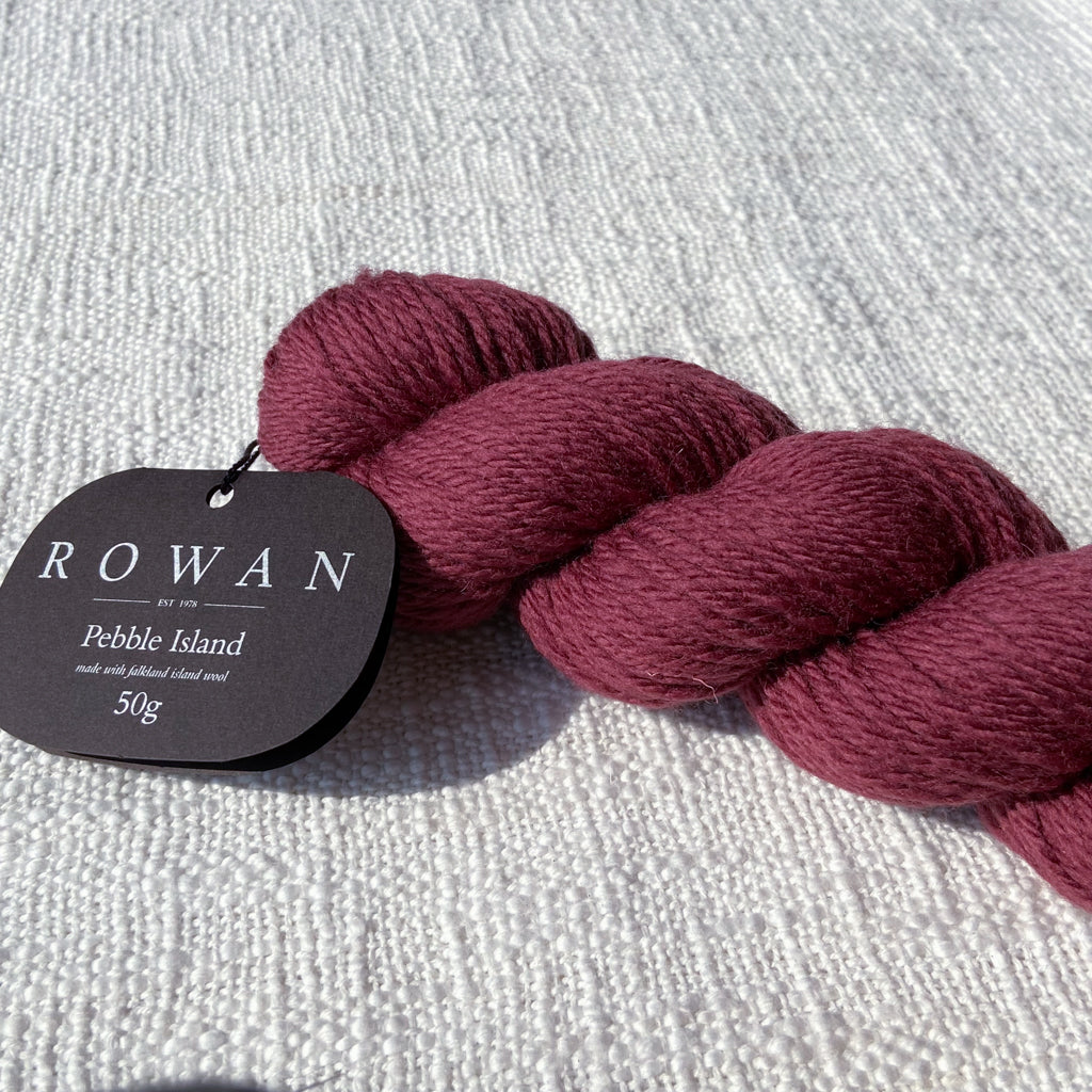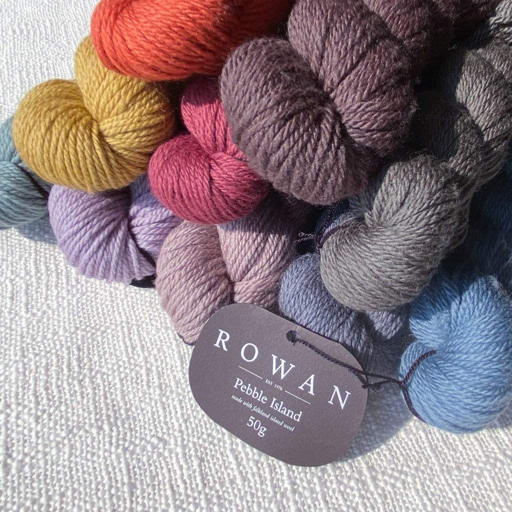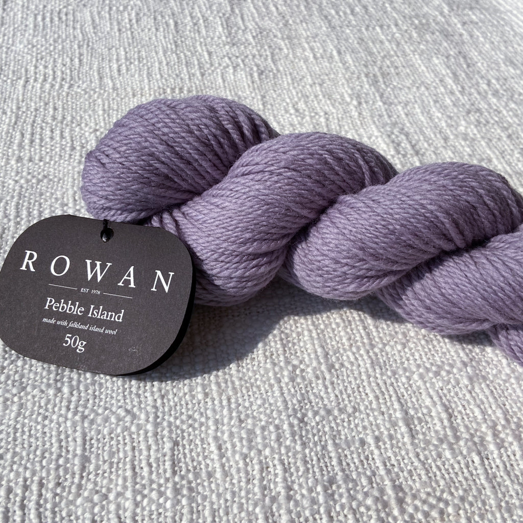 Pebble Island, in the Falkland Islands archipelago, is home to a farming family and several thousand unique Merino sheep who graze freely on the luscious natural vegetation and breathe in the rich sea air. This special location is where some of the world’s finest pure merino wool is grown, and then carefully shorn by hand before shipping to the UK where it is spun and dyed in a family-owned Yorkshire mill. This is a yarn that has taken time and careful planning—Rowan has been able to procure the entire clip from several shearings to launch a very special limited-quantity yarn, and is committed to continuing to purchase from the island each year. This yarn is fully traceable, responsibly farmed, and 100% pure. The beautiful palette was developed by Erika Knight and is inspired by the natural stones and the indigenous flora and fauna found on Pebble Island. This exceptional yarn is natural, renewable, biodegradable, breathable, hypoallergenic, resilient and elastic, making it comfortable both to knit with and to wear.