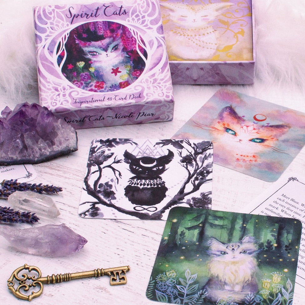 Nicole Piar created this deck of 48 inspirational cards to bring you peace, connection, and clarity. Each card consists of a hand-painted Spirit Cat printed on one side and a unique healing message on the other. These Spirit Cats come straight from her heart and imagination.