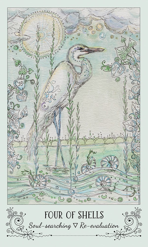 The Spiritsong Tarot structure is based on the traditional tarot, containing the 22 Majors, the 56 Minors, and four suits: Acorns for Wands/Fire; Feathers for Swords/Air; Shells for Cups/Water; and Crystals for Pentacles/Earth.
