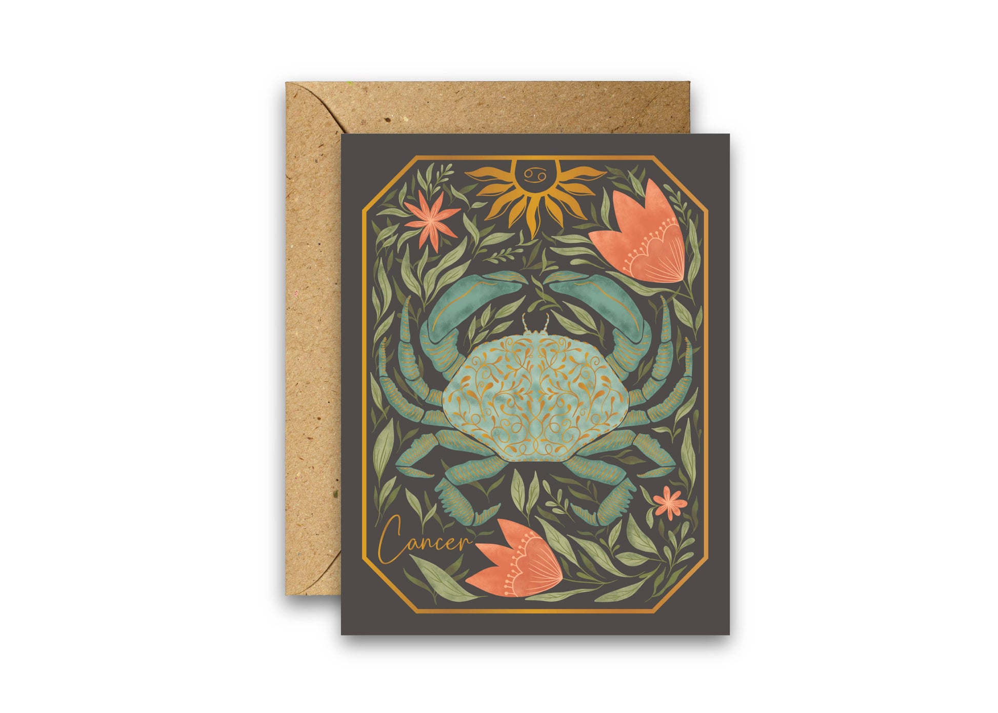 The Cancer Zodiac Garden Gold Foil Greeting Card: Single