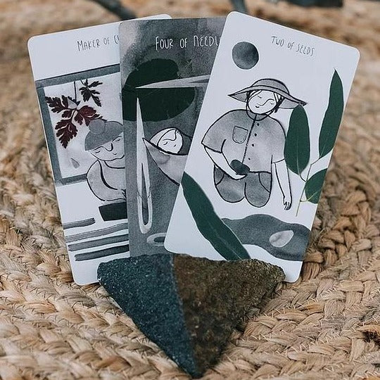This tarot deck is a love letter for hope, gratitude, and commitment to honoring the land we live on, the path our ancestors took to get us where we are here & now, and moving forward understanding the ripple effect our actions have on future generations to come.