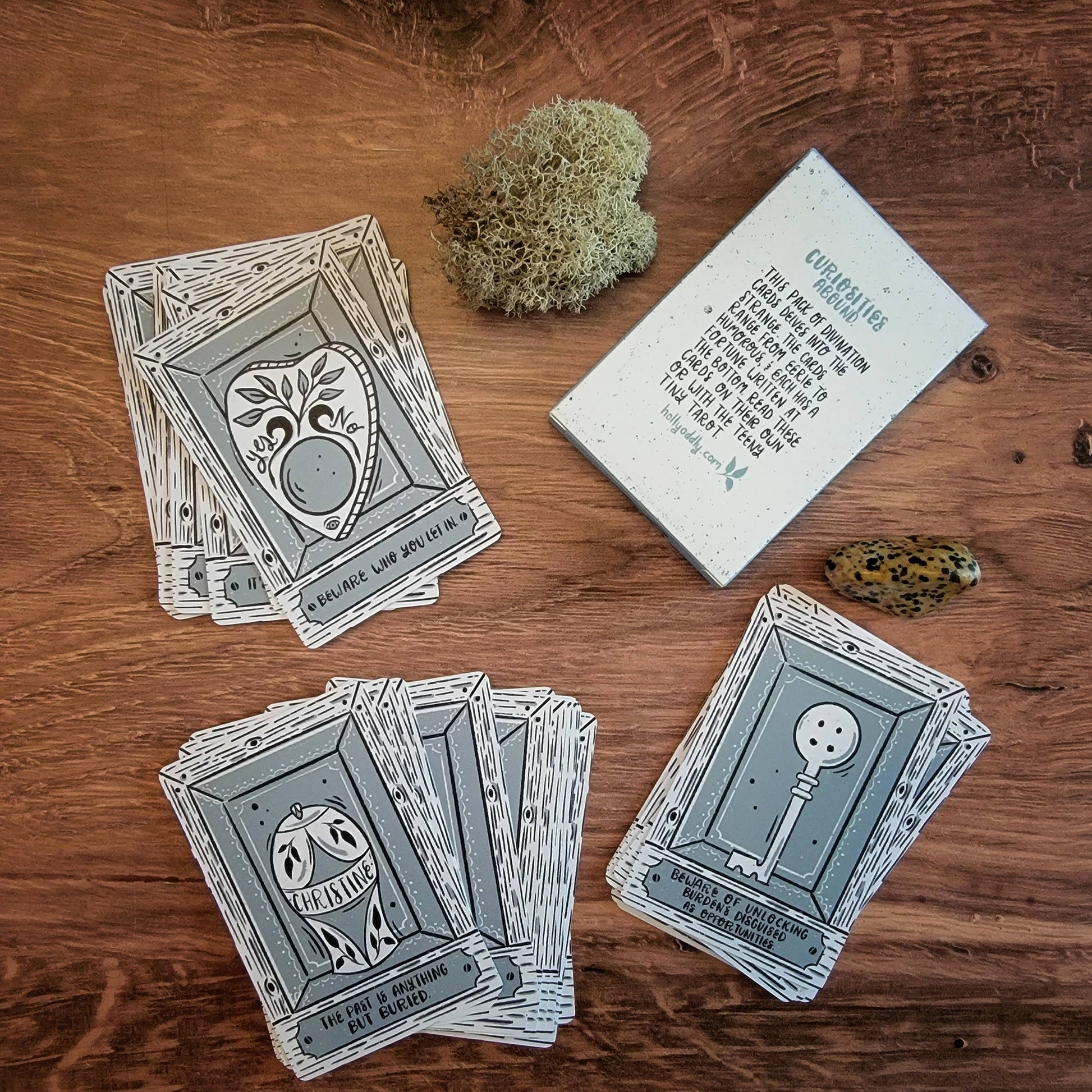 The Teeny Tiny Tarot (TTT) and Mini Divi are 58x88mm card decks that are perfect for taking with you and using together.