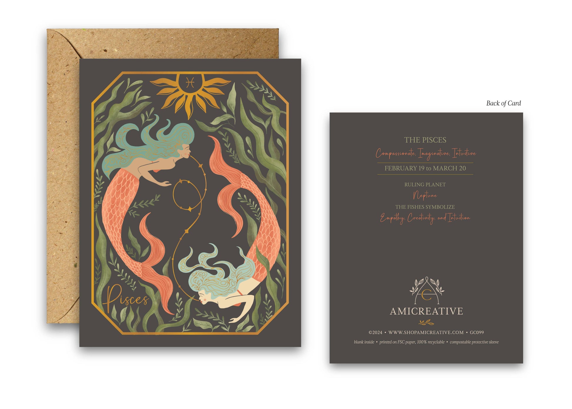 This card is perfect for Pisces birthdays, heartfelt sentiments, and anyone who loves a touch of fantasy. Each card includes details about Pisces' traits and important dates on the back.