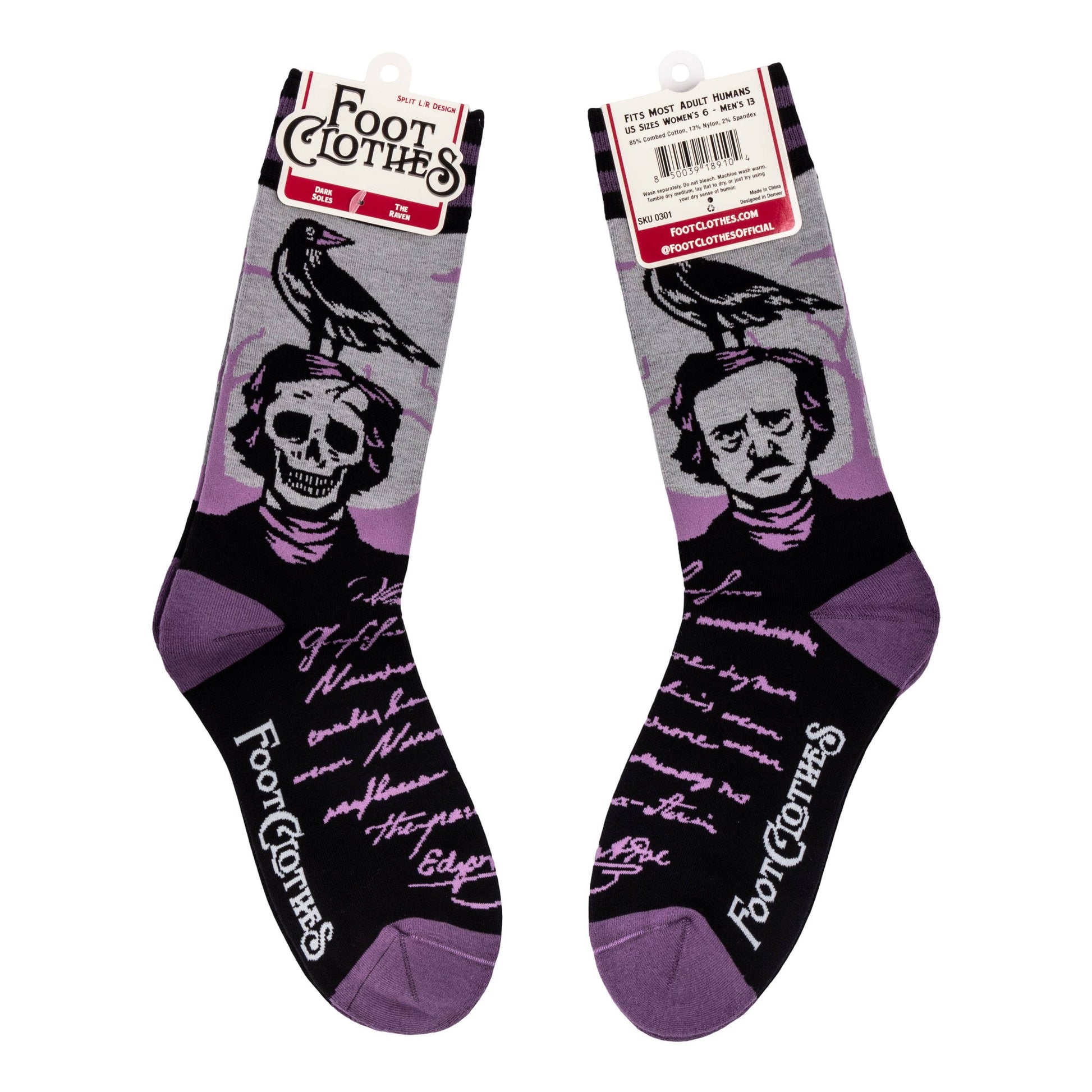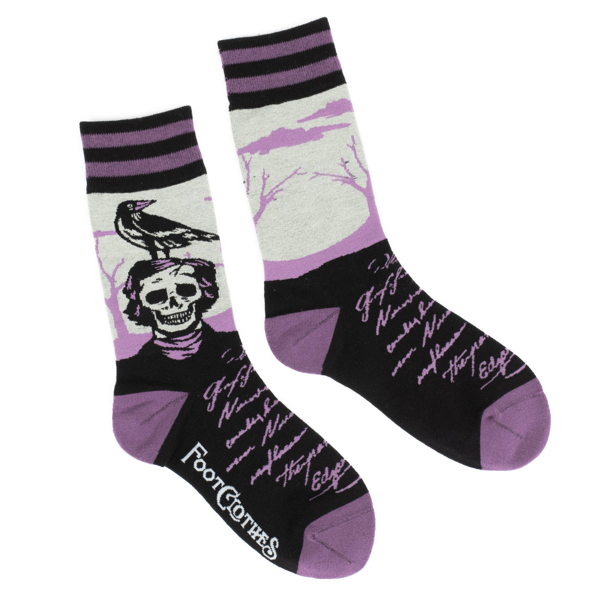 For our fans of the macabre and dark, these socks are great for wearing while tapping at chamber doors. Behold, our tribute to the great Edgar Allen Poe. Next time you ask a raven if you should wear socks that aren't these ones, he will quoth, "nevermore."