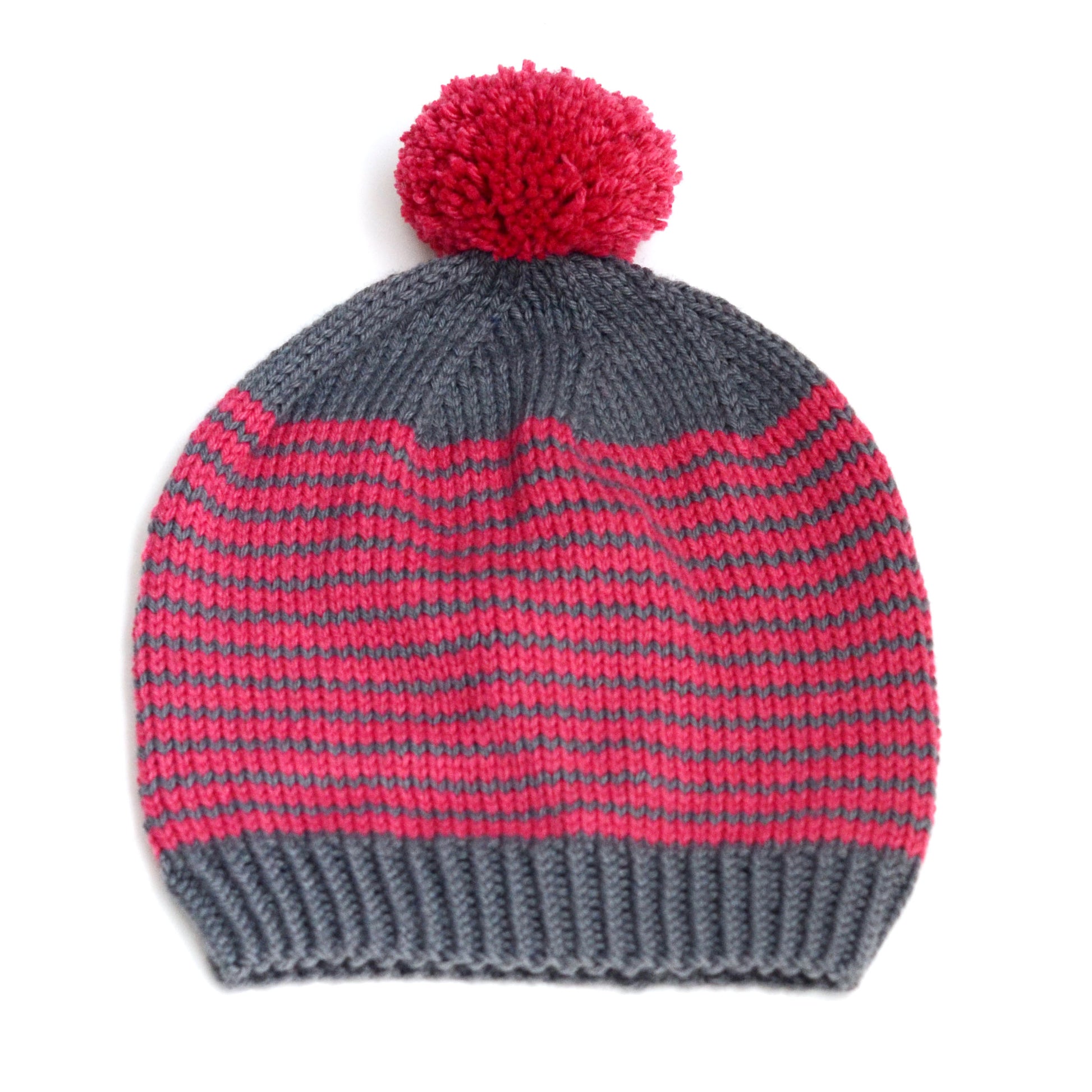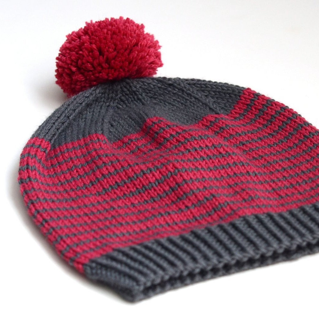 A cozy striped slouch hat, perfect for the entire family. Sized for babies through adults.