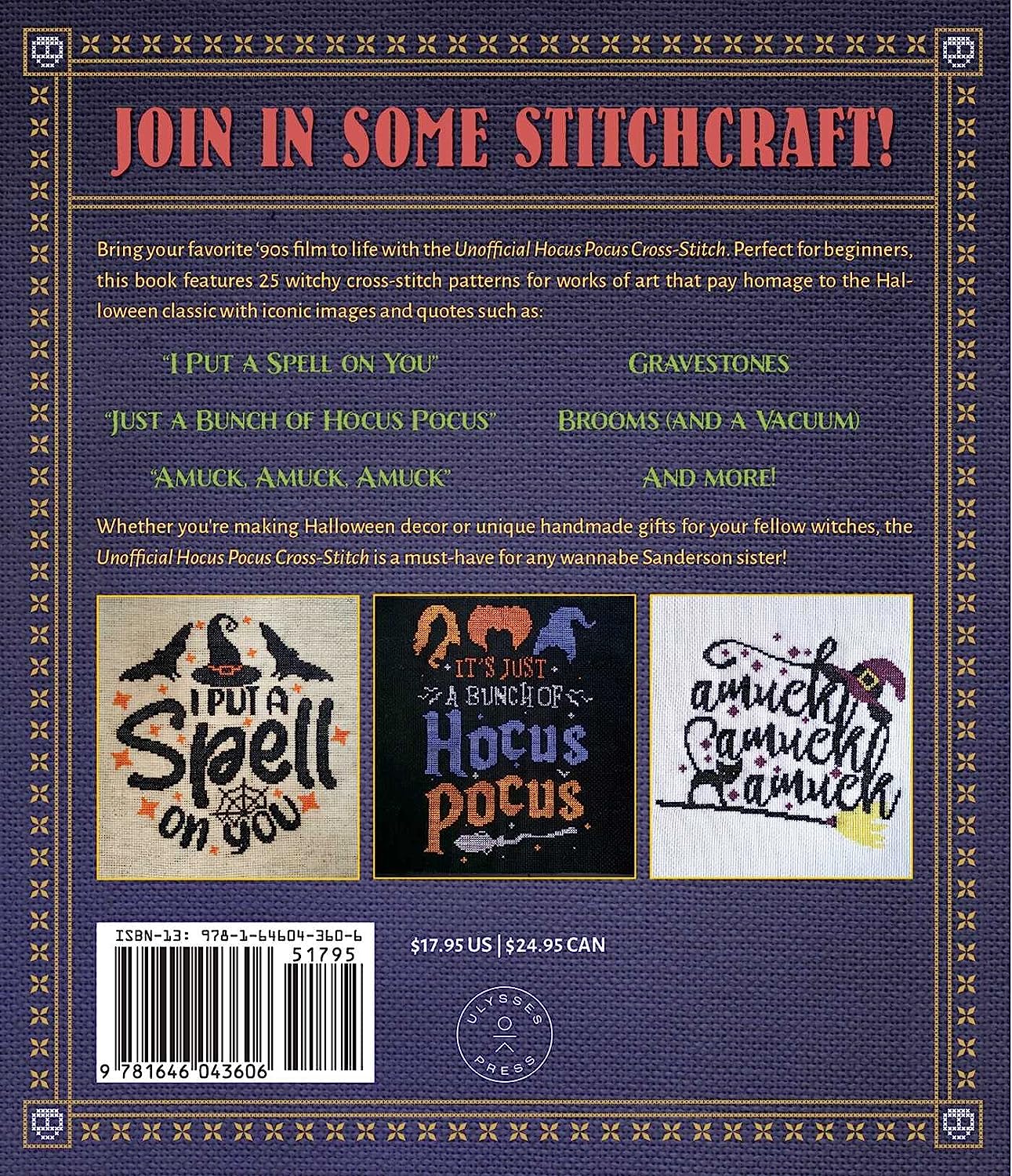 Unofficial Hocus Pocus Cross-Stitch brings your favorite '90s film to life with cute crafts and spooky decor. Perfect for beginners, this book has 25 witchy cross-stitch patterns that pay homage to the Halloween classic.