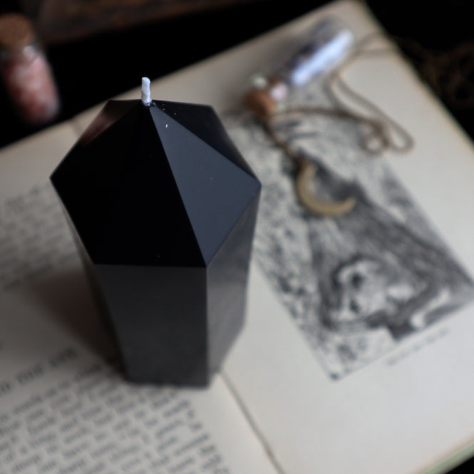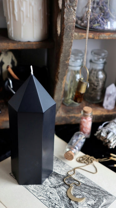 This handmade soy candle looks like black obsidian! These look gorgeous on an altar or as witchy home decor.